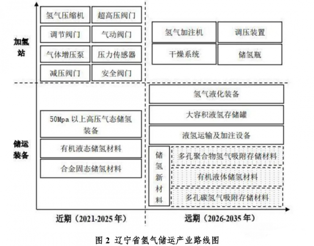 近期(2021-2025年),重點(diǎn)發(fā)展50兆帕以上高壓氣態(tài)儲(chǔ)氫裝備和低溫液態(tài)儲(chǔ)氫裝備,同時(shí)開展有機(jī)液態(tài)儲(chǔ)氫、合金固態(tài)儲(chǔ)氫等儲(chǔ)氫材料的研發(fā)和生產(chǎn)。遠(yuǎn)期(2026-2035年),積極發(fā)展氫氣液化裝備、大容積液氫存儲(chǔ)罐、液氫運(yùn)輸及加注設(shè)備等儲(chǔ)氫裝備,同時(shí)開展有機(jī)液體儲(chǔ)氫材料、多孔碳?xì)錃馕酱鎯?chǔ)材料、多孔聚合物氫氣吸附存儲(chǔ)材料的研發(fā)和生產(chǎn)。