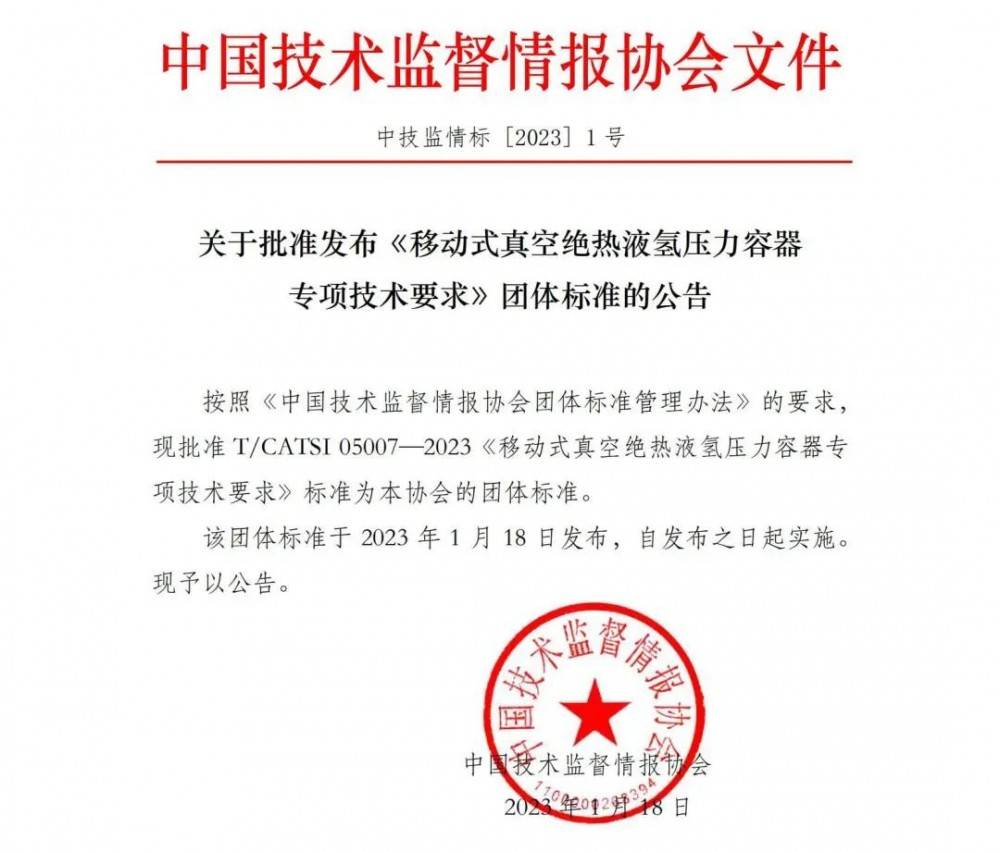 近日,中國(guó)技術(shù)監(jiān)督情報(bào)協(xié)會(huì)正式發(fā)布T/CATSI 05007—2023《移動(dòng)式真空絕熱液氫壓力容器專(zhuān)項(xiàng)技術(shù)要求》團(tuán)體標(biāo)準(zhǔn)(以下簡(jiǎn)稱(chēng)“標(biāo)準(zhǔn)”),自發(fā)布之日起正式實(shí)施。該標(biāo)準(zhǔn)由中集安瑞科旗下南通中集能源裝備有限公司(簡(jiǎn)稱(chēng)”南通能源“)牽頭起草。