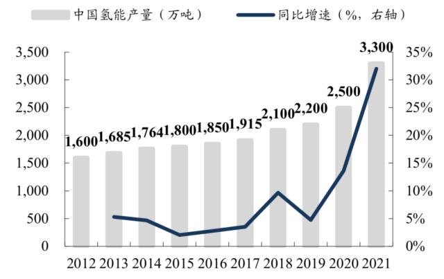 而自2020年“雙碳”目標(biāo)提出以來(lái),我國(guó)氫能產(chǎn)業(yè)發(fā)展加速,氫能產(chǎn)量由2017年的1915萬(wàn)噸增長(zhǎng)至2021年的3300萬(wàn)噸,5年CAGR達(dá)14.6%,2021年32%的同比增速更是創(chuàng)下新高,目前已是第一大制氫國(guó)。并且氫儲(chǔ)能2023年就是產(chǎn)業(yè)化元年,長(zhǎng)周期氫儲(chǔ)能項(xiàng)目建設(shè)還會(huì)加速綠氫生產(chǎn)。