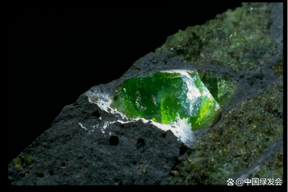 (鎂橄欖石,一種橄欖石礦物。地下水與橄欖石相互作用會導(dǎo)致氫氣在周圍巖層中積聚。圖片來源:史密森尼國家自然歷史博物館。)