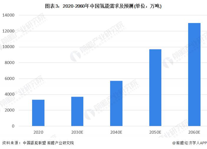 根據(jù)中國(guó)氫能聯(lián)盟的預(yù)測(cè),2020 年以后中國(guó)氫能需求將持續(xù)增加,尤其是 2030 年以后,為達(dá)成 " 碳中和、碳達(dá)峰 " 的目標(biāo),氫能需求量將大增。到 2060 年,中國(guó)氫能年需求將超過(guò) 1.3 億噸。