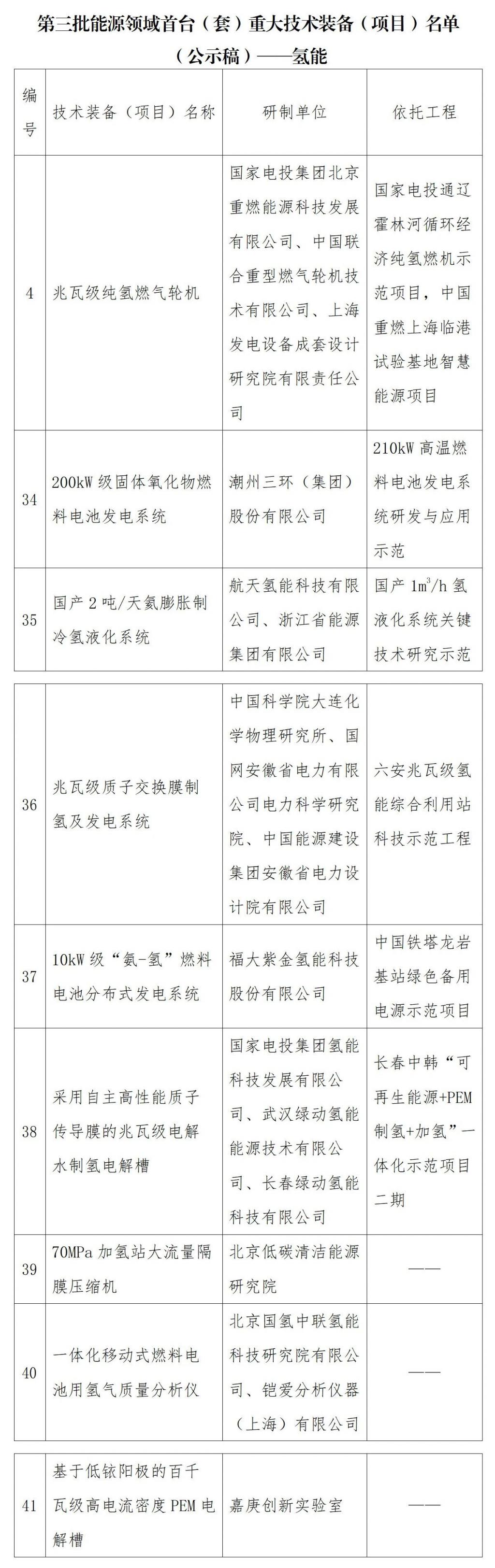 文件指出,根據(jù)《國(guó)家能源局關(guān)于促進(jìn)能源領(lǐng)域首臺(tái)(套)重大技術(shù)裝備示范應(yīng)用的通知》(國(guó)能發(fā)科技〔2018〕49 號(hào))、《能源領(lǐng)域首臺(tái)(套)重大技術(shù)裝備評(píng)定和評(píng)價(jià)辦法》(國(guó)能發(fā)科技〔2022〕81 號(hào))等有關(guān)要求,經(jīng)組織專(zhuān)家評(píng)審和復(fù)核,擬將 58 項(xiàng)技術(shù)裝備列入第三批能源領(lǐng)域首臺(tái)(套)重大技術(shù)裝備項(xiàng)目清單。其中氫能產(chǎn)業(yè)相關(guān)技術(shù)裝備有 9 項(xiàng),占比 16%,同比去年的 4 項(xiàng)增長(zhǎng) 125%。本次公布的是 2022 年度申報(bào)的能源領(lǐng)域首臺(tái)套技術(shù)裝備(項(xiàng)目)。氫能項(xiàng)目詳情如下所示: