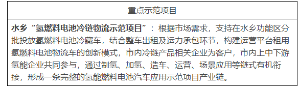 2.有序推進(jìn)燃料電池汽車示范應(yīng)用。以水鄉(xiāng)“氫燃料電池冷鏈物流示范項(xiàng)目”為推廣試點(diǎn),支持市屬國有企業(yè)牽頭推動項(xiàng)目落地。以冷鏈物流車、環(huán)衛(wèi)車、重型牽引車等商用車應(yīng)用為突破點(diǎn)和切入點(diǎn),推進(jìn)燃料電池汽車在港口、物流園區(qū)、重點(diǎn)產(chǎn)業(yè)園區(qū)等區(qū)域和長途貨運(yùn)、城市配送、市政環(huán)衛(wèi)、城市建設(shè)等領(lǐng)域示范應(yīng)用,打造大灣區(qū)氫能物流中心和綠色示范港口。