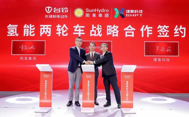 目前,臺(tái)鈴集團(tuán)、陽氫集團(tuán)、捷氫科技三方已經(jīng)簽訂戰(zhàn)略合作簽約,擬聯(lián)合實(shí)現(xiàn)10000輛氫能兩輪車市場(chǎng)化運(yùn)營。