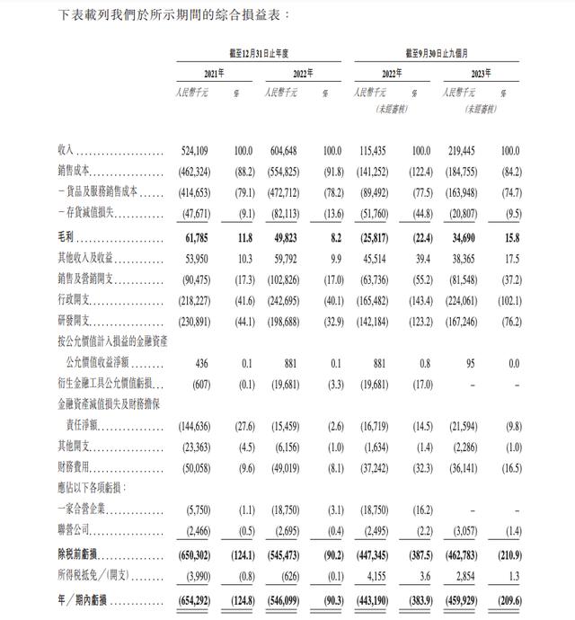 財報顯示,2021年、2022年及2023年前9個月,重塑能源實現(xiàn)收入分別為約5.24億元、6.05億元、2.19億元;同期公司虧損分別為約6.54億元、5.46億元、4.60億元,合計近17億元。