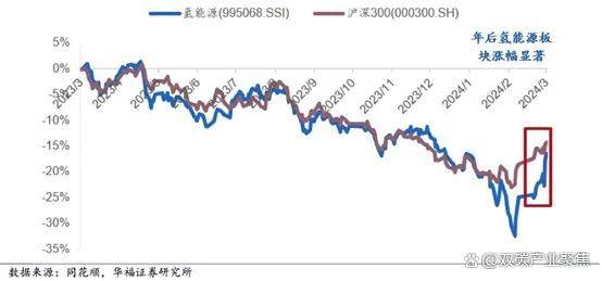 圖說(shuō):近一年氫能行業(yè)相對(duì)大盤走勢(shì)
