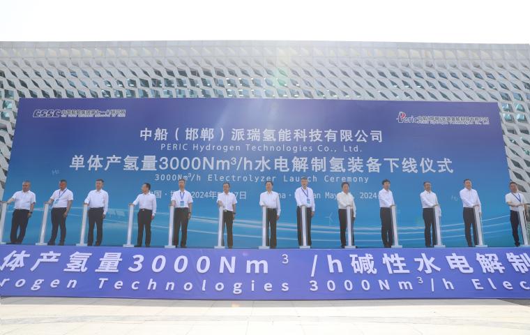 5月17日,國內(nèi)最大單體產(chǎn)氫量3000Nm³/h水電解制氫裝備下線儀式暨“氫動(dòng)未來”氫能產(chǎn)業(yè)發(fā)展大會(huì)在河北省邯鄲市中國船舶集團(tuán)第七一八研究所(簡稱七一八所)舉辦。“此次下線投用的制氫裝備,突破了多項(xiàng)前沿科學(xué)難題和核心關(guān)鍵技術(shù),實(shí)現(xiàn)了單體產(chǎn)氫量由2000Nm³/h到3000Nm³/h的跨越,對(duì)我國加快構(gòu)建清潔低碳、安全高效的能源體系具有重要意義。”七一八所所長、黨委副書記李俊華表示。