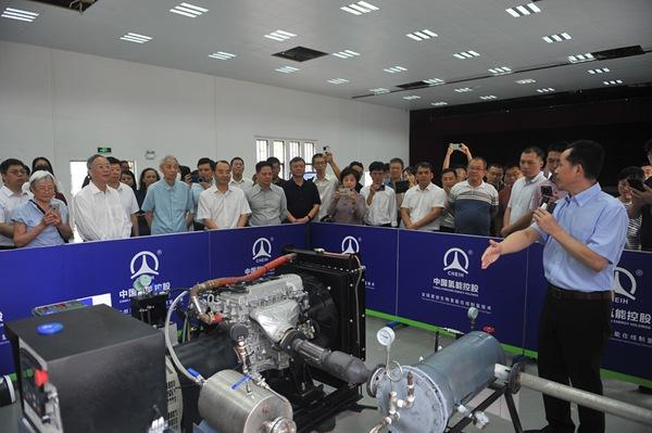 與會(huì)嘉賓參觀綠色醇?xì)鋭?dòng)力系統(tǒng)。廣西科學(xué)院供圖