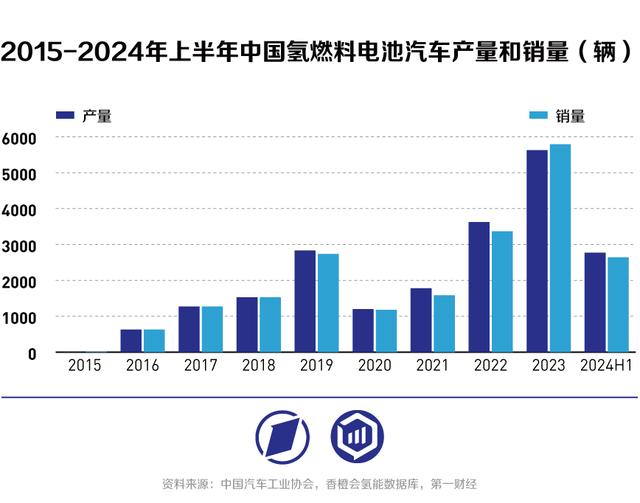 相比之下,中國市場逆勢增長,繼續(xù)保持全球燃料電池車產(chǎn)銷第一的地位。根據(jù)中國汽車工業(yè)協(xié)會數(shù)據(jù),2024年上半年全國氫燃料電池汽車產(chǎn)銷數(shù)據(jù)分別為2773輛和2644輛,同比增加11.1%和9.7%,均位列世界第一。