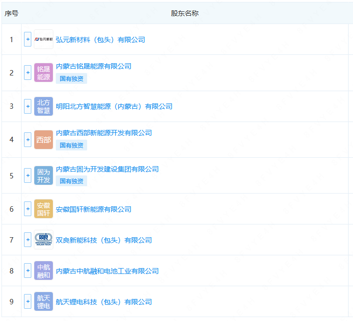 企查查股權(quán)穿透顯示,該公司由弘元綠能旗下弘元新材料(包頭)有限公司、明陽智能旗下明陽北方智慧能源(內(nèi)蒙古)有限公司、國軒高科旗下安徽國軒新能源有限公司、雙良節(jié)能旗下雙良新能科技(包頭)有限公司等共同持股。