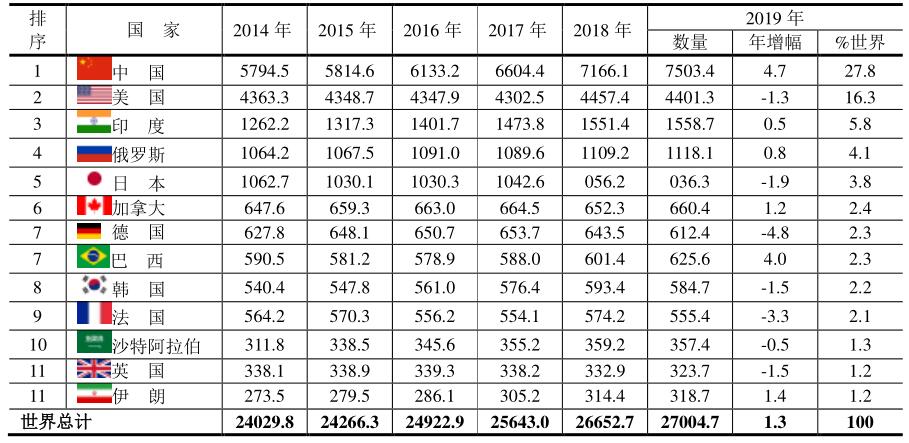 中國是世界上電力生產最多的而且是增幅最大的國家,2019年發(fā)電量達7503.4TWh,比2018年增加了4.7%,占世界總量的27.8%;而美國、日本、德國、法國和英國均降低。