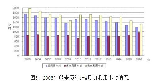 1-4月份,全國發(fā)電設備累計平均利用小時1180小時,同比降低97小時。