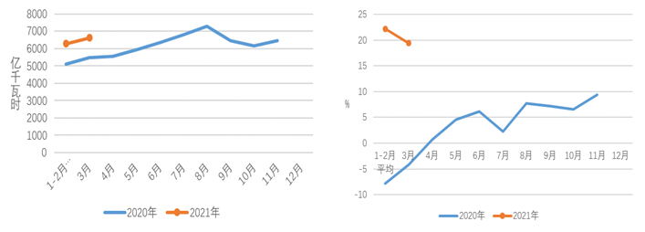 1-3月,全國全社會(huì)用電量19219億千瓦時(shí),同比增長21.2%,其中,3月份全國全社會(huì)用電量6631億千瓦時(shí),同比增長19.4%。