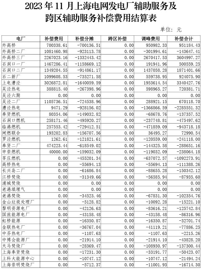 附件:2023年10-12月上海電網(wǎng)發(fā)電廠輔助服務及跨區(qū)輔助服務補償費用結(jié)算表
