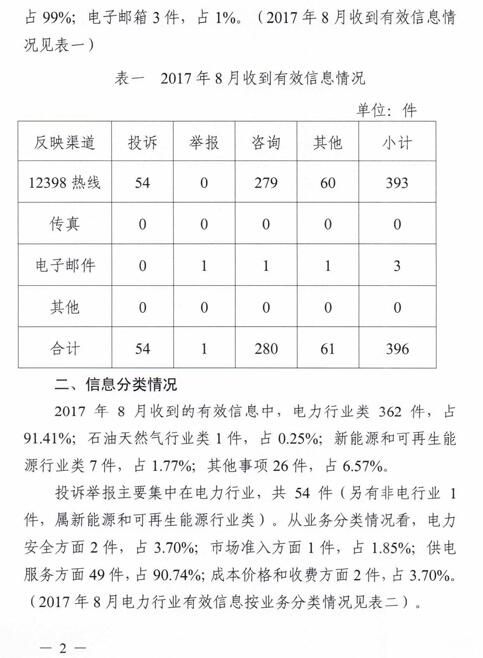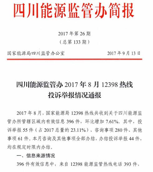 四川省2017年8月12398熱線投訴舉報(bào)情況