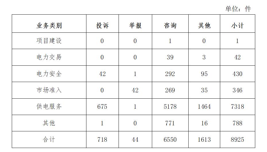 2023年1月共收到投訴舉報事項781件,根據(jù)國家有關(guān)法律法規(guī)規(guī)定,國家能源局派出機(jī)構(gòu)對屬于監(jiān)管職責(zé)范圍的696件進(jìn)行了受理,占投訴舉報量的89.11%;其他根據(jù)相關(guān)規(guī)定不予受理的,已按照有關(guān)規(guī)定進(jìn)行了及時轉(zhuǎn)辦,并將相關(guān)情況及時告知了當(dāng)事人。