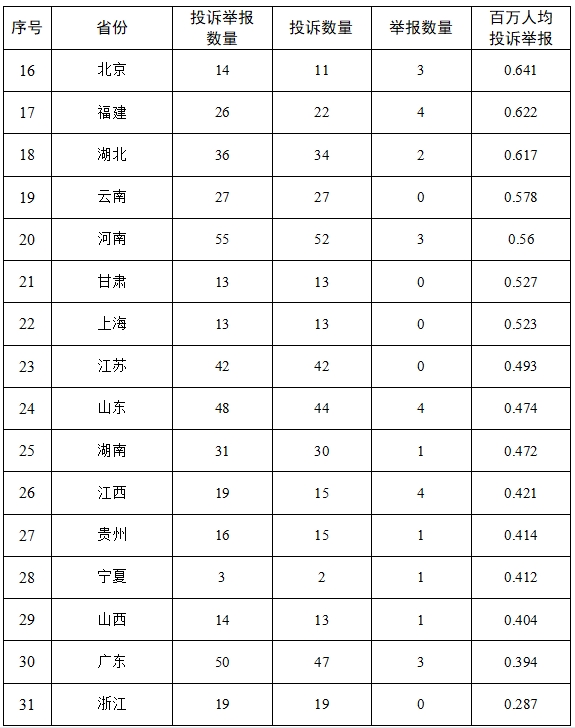 (按百萬人均投訴舉報(bào)排序)