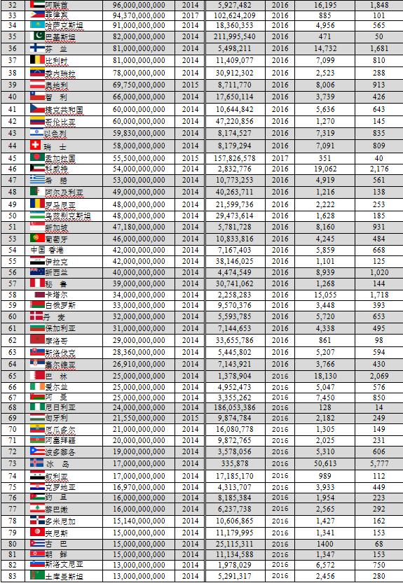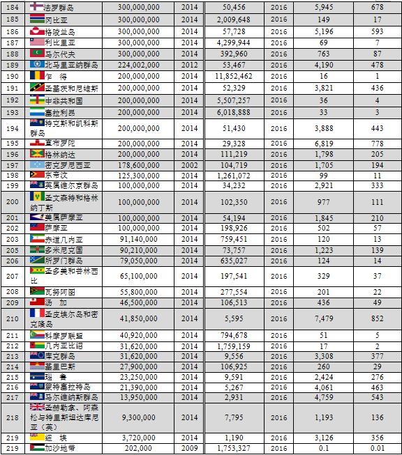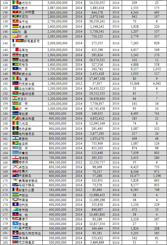 本文數(shù)據(jù)主要由美國中央情報局(CIA)統(tǒng)計(jì),但個別國家如中國、印度尼西亞、阿聯(lián)酋、菲律賓、尼泊爾、北馬里亞納群島等由該國的統(tǒng)計(jì)機(jī)構(gòu)統(tǒng)計(jì)。