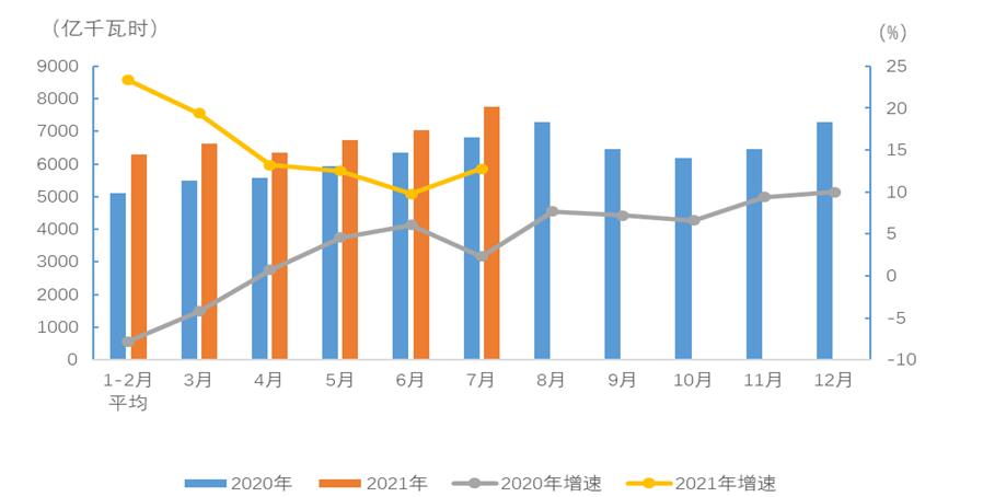 7月份,第一、二、三產(chǎn)業(yè)用電量增速分別為20.0%、9.3%和21.6%;城鄉(xiāng)居民生活用電量同比增長18.3%。