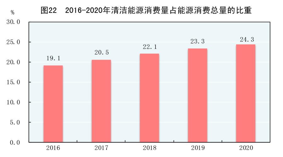 2016-2020年清潔能源消費(fèi)量占能源消費(fèi)總量的比重