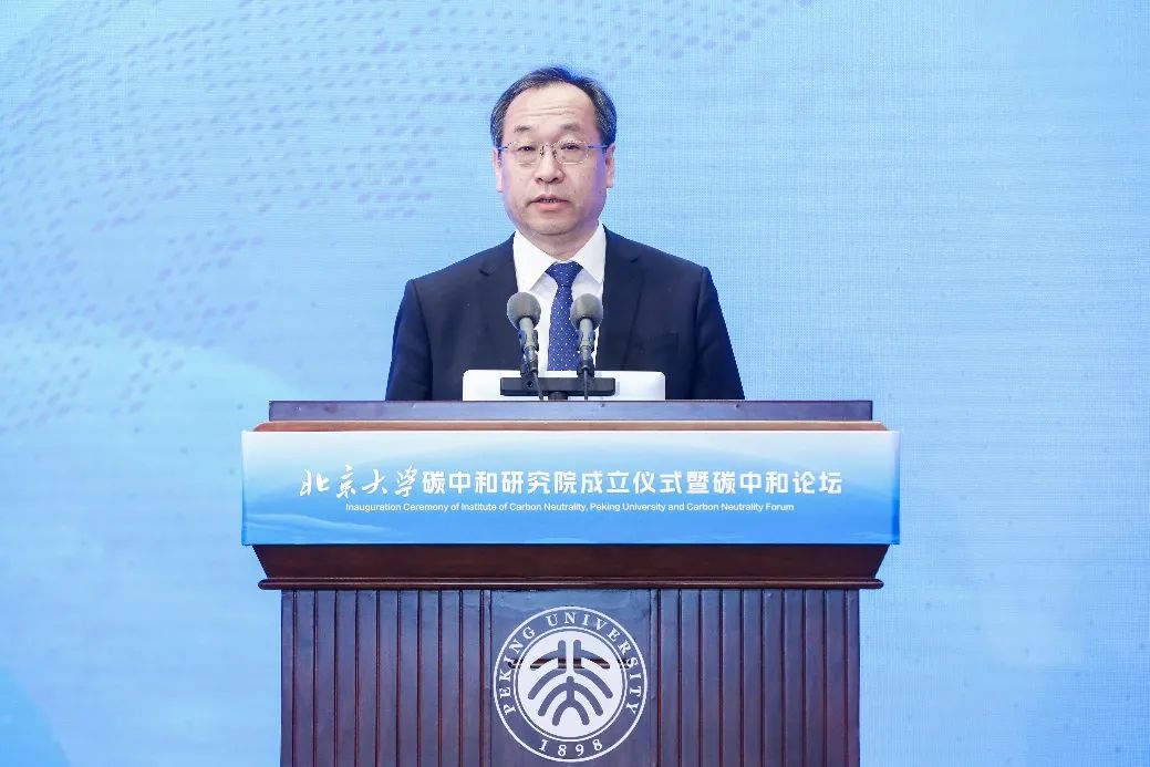 生態(tài)環(huán)境部副部長趙英民在致辭中表示,綠色、低碳發(fā)展已經(jīng)成為國際的潮流共識和大國競爭的新賽道。黨的二十大報告為我們今后做好應(yīng)對氣候變化和“雙碳”工作指明了方向。多年以來,北京大學(xué)為我國生態(tài)環(huán)境和可持續(xù)發(fā)展事業(yè)作出了巨大的貢獻。北京大學(xué)碳中和研究院的建設(shè),必將為我國實現(xiàn)碳達峰、碳中和,推進應(yīng)對氣候變化全球治理、建設(shè)清潔美麗世界發(fā)揮重要的作用。他希望研究院引領(lǐng)“雙碳”科技創(chuàng)新,加快“雙碳”人才的培養(yǎng),講好“雙碳”中國故事,不斷提升我國在應(yīng)對氣候變化“雙碳”領(lǐng)域的話語權(quán)、影響力。