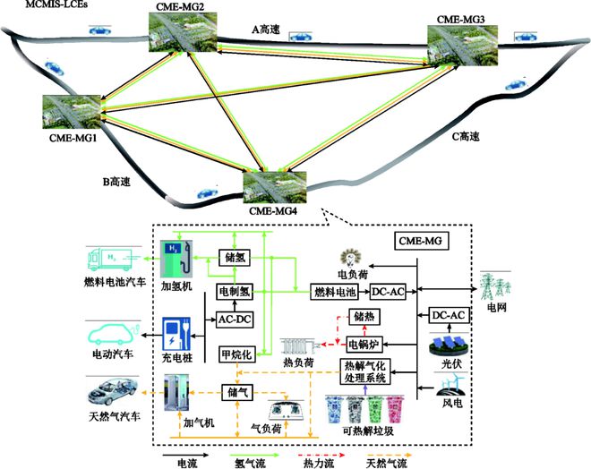 新能源汽車產(chǎn)業(yè)的快速發(fā)展是實(shí)現(xiàn)“碳達(dá)峰,碳中和”行動(dòng)的重要組成部分。隨著新能源汽車逐步規(guī)模化發(fā)展,我國(guó)電能、氫氣、天然氣驅(qū)動(dòng)汽車保有量預(yù)計(jì)在2035年突破1.5億輛。面對(duì)不斷增長(zhǎng)的多能源充能需求和碳減排壓力,提出含電、氫和天然氣等多種能源生產(chǎn)、傳輸、轉(zhuǎn)換、存儲(chǔ)、消費(fèi)各環(huán)節(jié)深度耦合,并具有一定垃圾處理能力的充能型微網(wǎng)是解決新能源汽車充能這一涵蓋環(huán)境、交通、能源等多領(lǐng)域協(xié)同問題的有效途徑之一。