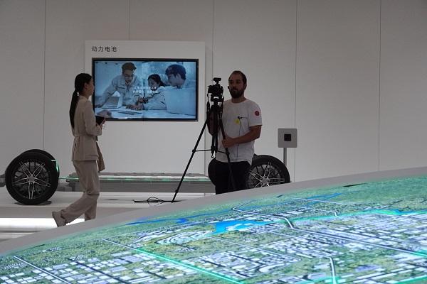巴西勞動(dòng)者電視臺(TVT)記者M(jìn)auro Ram Ramos Pintos在拍攝園區(qū)規(guī)劃圖。中國日報(bào)網(wǎng)記者 齊磊 攝
