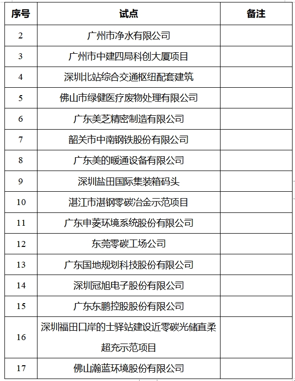 附件:廣東省第一批碳達峰碳中和試點名單