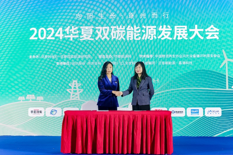 2024年3月28日,由華夏時(shí)報(bào)社、華夏雙碳能源研究院以及華夏能源網(wǎng)聯(lián)合主辦的“向陽生長·逐光而行——2024華夏雙碳能源發(fā)展大會(huì)”在北京圓滿舉辦,本次活動(dòng)由中國物資再生協(xié)會(huì)風(fēng)光設(shè)備循環(huán)利用專委會(huì)提供指導(dǎo),運(yùn)達(dá)股份、東方日升、雙良節(jié)能、TCL光伏科技、通威集團(tuán)、正泰新能源、晶澳科技、金螳螂給予特別支持。大會(huì)不僅相繼發(fā)布了風(fēng)光儲(chǔ)各領(lǐng)域發(fā)展新質(zhì)生產(chǎn)力倡議書,還發(fā)布了全球綠色工商低碳發(fā)展倡議書。同時(shí),還舉行了雙碳應(yīng)用戰(zhàn)略合作簽約、華夏雙碳能源研究院專家聘書頒發(fā)等多項(xiàng)儀式。