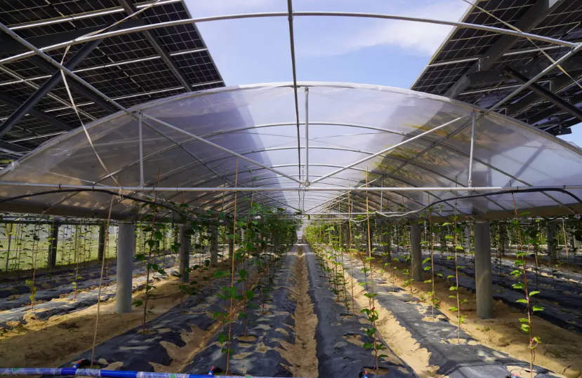 在萬寧和樂鎮(zhèn)勤賽村,16萬塊光伏板下,栽種著一壟壟黃瓜、玉米、辣椒等1200余畝經(jīng)濟作物。如今長勢喜人的土地,曾長期處于貧瘠撂荒狀態(tài)。2022年底,按照“棚上發(fā)電、棚下種植、農(nóng)光互補”的模式和理念,大唐海南公司投資建設(shè)萬寧和山70MW農(nóng)光互補項目,每年可為電網(wǎng)輸送1.2億千瓦時綠電,也讓曾經(jīng)的沙灘荒地成了“豐收田”。