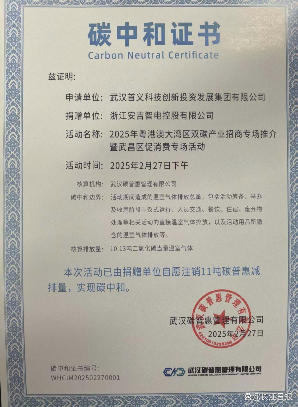2月27日,2025年粵港澳大灣區(qū)雙碳產業(yè)招商專場推介暨武昌區(qū)促消費專場活動在深圳舉辦。這場“碳招商”不僅吸引了大灣區(qū)144.2億元“碳投資”落地武漢,還實現了“碳中和”。