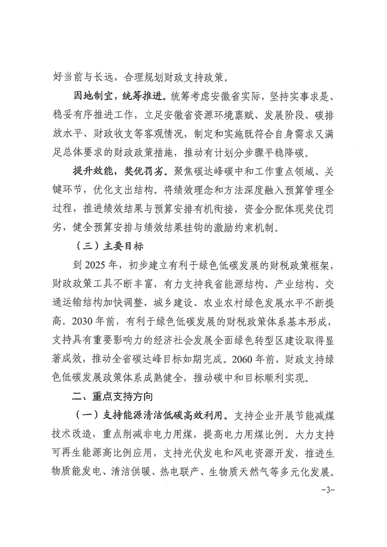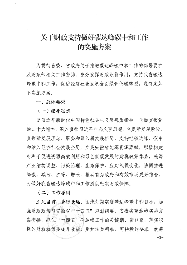 近日,安徽省財政廳印發(fā)《關于財政支持做好碳達峰碳中和工作的實施方案》的通知。