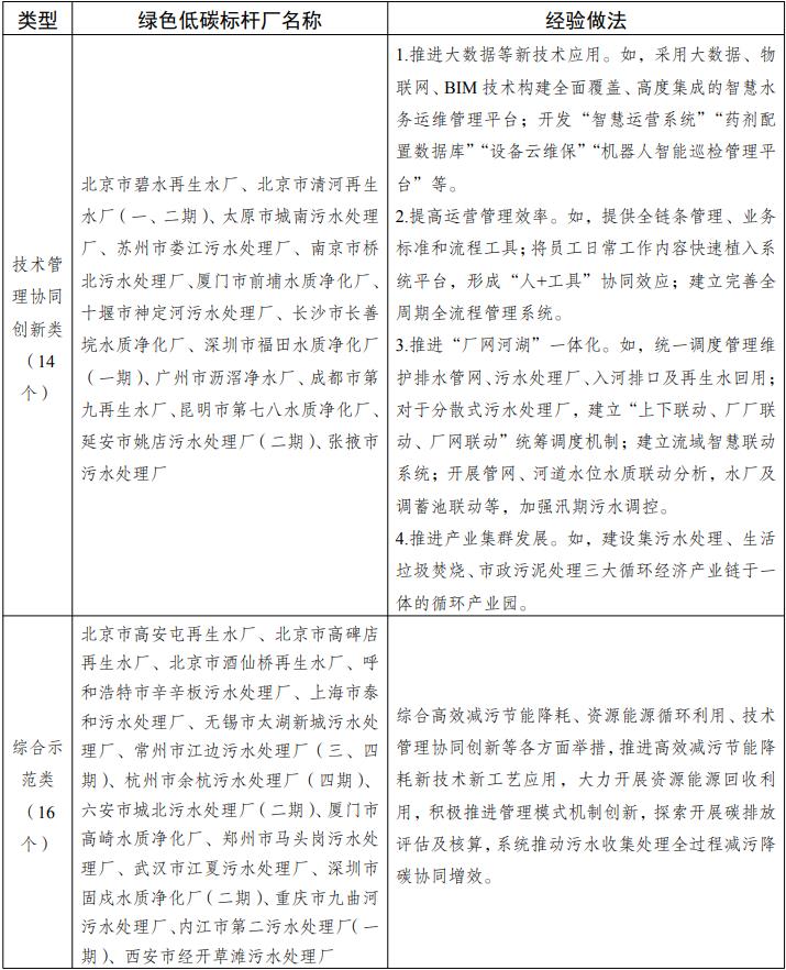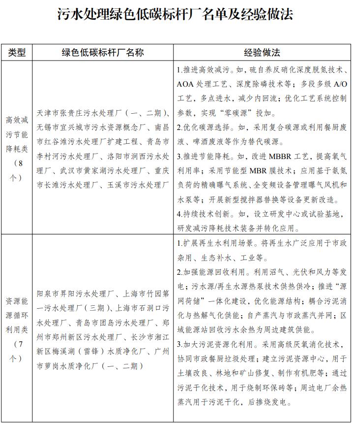 附件:污水處理綠色低碳標桿廠名單及經驗做法