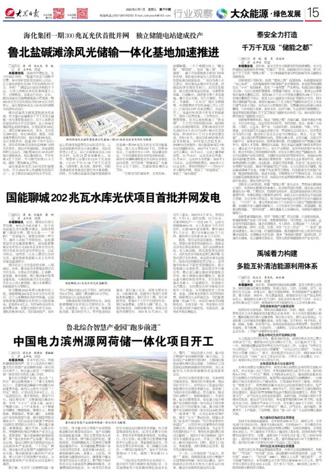“在推進(jìn)項(xiàng)目建設(shè)中,立足優(yōu)勢,破題解題,一個(gè)個(gè)難題從紙上‘概念圖’‘規(guī)劃圖’,變成‘施工圖’‘實(shí)景圖’,離不開各級能源主管部門指導(dǎo)和關(guān)懷,靠的是全體?;斯?jiān)克難、攻營拔寨的砥礪奮進(jìn)?!表?xiàng)目負(fù)責(zé)人對記者說,項(xiàng)目建設(shè)由濰坊市發(fā)改委、濱海區(qū)經(jīng)濟(jì)發(fā)展局等部門,共同壓茬推進(jìn)。建立政企聯(lián)席會(huì)議制度,完善要素保障、問題解決、調(diào)度督導(dǎo)等十多條措施;建立項(xiàng)目臺(tái)賬,實(shí)行月調(diào)度、月分析、月通報(bào),“點(diǎn)對點(diǎn)”細(xì)化支持政策,申請政策性開發(fā)性金融工具1.5億元;打造項(xiàng)目EPC總承包模式,在延遲開工、設(shè)備材料供貨不足等不利因素下,堅(jiān)持工程再統(tǒng)籌、工序再優(yōu)化、工期再倒排,全力以赴搶抓施工“黃金期”,千方百計(jì)把時(shí)間搶回來,按時(shí)按點(diǎn)進(jìn)入決戰(zhàn)收尾階段。首批100兆瓦光伏從2022年8月25日打設(shè)第一根光伏支架樁基,到2023年1月12日全部安裝完成,歷經(jīng)141天,建設(shè)完成26022根光伏區(qū)支架樁基、3253組光伏區(qū)支架、184380塊光伏組件;?;瘓F(tuán)60兆瓦/120兆瓦時(shí)儲(chǔ)能電站,2022年9月20日,項(xiàng)目開工建設(shè);10月15日,完成土建基礎(chǔ)澆筑;11月18日,完成電池倉吊裝;11月19日,完成PCS倉吊裝;2023年1月12日,完成并網(wǎng)前調(diào)試;2023年1月14日21時(shí),順利并網(wǎng)投產(chǎn)……歷時(shí)4個(gè)多月順利并網(wǎng),展現(xiàn)了“濱海溫度”、彰顯了“?;俣取?。