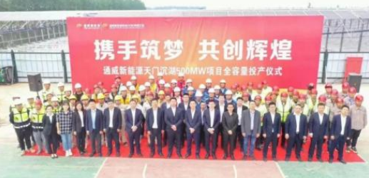 天門項目是通威新能源首個500MW級基地項目,年均發(fā)電量可達6億度,年均減少碳排放52.3萬噸。2022年6月,一期100MW項目并網(wǎng)發(fā)電。同年9月20日,二期400MW項目正式開工,期間,通威新能源始終秉承“風清氣正,打造精品工程”的建設(shè)理念,科學規(guī)劃、精心組織、搶抓進度,保障工程質(zhì)量和進度,全力打造優(yōu)質(zhì)精品工程。二期項目從正式開工建設(shè)到建成投產(chǎn)僅用時7個月,跑出了“通威加速度”。