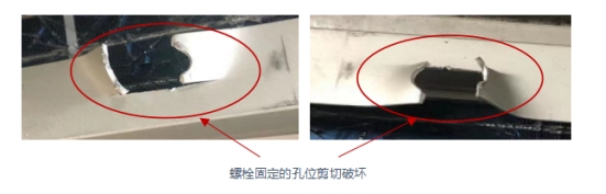當(dāng)遭受大風(fēng)等外界壓力時,組件的破壞都是從最薄弱點(diǎn)開始的,即連接處的C面。這在兩家主流廠家的風(fēng)洞測試中,得到了同樣的驗(yàn)證結(jié)果:組件失效均為螺栓固定的孔位剪切破壞。因此,提高最薄弱點(diǎn)的承載力,是提高組件抗載荷能力最有效和最經(jīng)濟(jì)的方式。