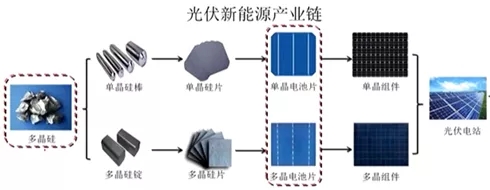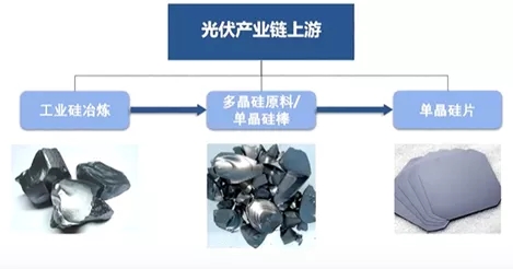 光伏產(chǎn)業(yè)鏈相對簡單,產(chǎn)業(yè)鏈上游主要是將半導體材料硅提煉成晶硅,中游廠商再將晶硅制作成電池片并生產(chǎn)相關(guān)的光伏組件,下游廠商則將電池片組裝成完整的發(fā)電系統(tǒng)并進行維護和管理。