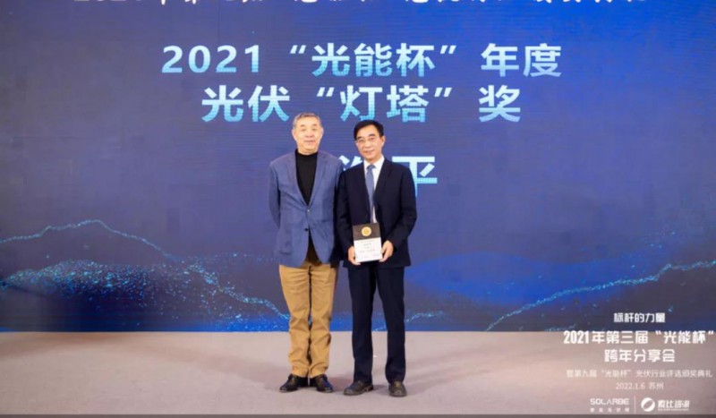 1月6日,備受矚目的2021年“光能杯”評選活動(dòng)在蘇州盛大開啟,中環(huán)股份副董事長兼總經(jīng)理沈浩平先生被授予2021年度“光能杯”光伏“燈塔獎(jiǎng)”,國家應(yīng)對氣候變化戰(zhàn)略研究和國際合作中心首任主任李俊峰先生為其現(xiàn)場頒獎(jiǎng)。
