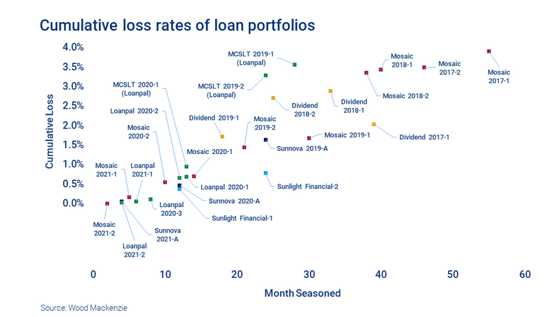 金融家繼續(xù)報告各種租賃、購電協(xié)議、貸款組合的低拖欠率和損失率。投資者現(xiàn)在可以獲得某些投資組合近五年的業(yè)績數(shù)據(jù)。而隨著時間的推移,有更好表現(xiàn)的供應商應該在未來的交易中獲得更低的資本成本。