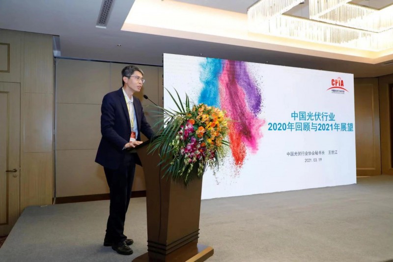 論壇上,中國(guó)光伏行業(yè)協(xié)會(huì)王世江秘書長(zhǎng)做了題為《2020年中國(guó)光伏行業(yè)回顧和2021年中國(guó)光伏行業(yè)展望》的主題演講。王秘書長(zhǎng)指出,2020年,國(guó)內(nèi)光伏電站裝機(jī)規(guī)模持續(xù)提升,投資成本繼續(xù)下降,產(chǎn)業(yè)集中度快速提升,技術(shù)不斷發(fā)展,融資規(guī)模不斷擴(kuò)大,國(guó)際化布局不斷加強(qiáng);展望2021年,全球光伏市場(chǎng)規(guī)模將加速擴(kuò)大,源網(wǎng)荷儲(chǔ)一體化和多能互補(bǔ)大基地將成為電站開發(fā)關(guān)注熱點(diǎn),技術(shù)快速迭代,行業(yè)將迎來擴(kuò)產(chǎn)潮,“光伏+”模式帶來更多應(yīng)用可能性,預(yù)計(jì)光伏將占據(jù)可再生能源增量市場(chǎng)半壁江山。