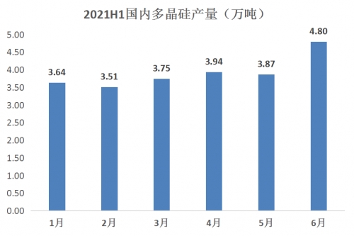 從硅業(yè)分會2021年上半年預(yù)計的硅片產(chǎn)量來看,硅料需求量合計約29.8萬噸,而國內(nèi)供給量約為28.1萬噸,供給與需求大致處于緊平衡狀態(tài)。硅片產(chǎn)能的超前超量釋放導(dǎo)致硅料總體需求激增,硅料企業(yè)上半年基本都是滿產(chǎn)運營狀態(tài),部分硅料企業(yè)個別月份綜合開工率更是高達111%。
