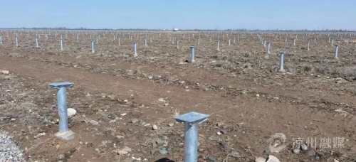 11月3日,在中電新能源武威涼州區(qū)70MW光伏發(fā)電項目現(xiàn)場,數(shù)臺引孔機、打樁機全部到位,機械轟鳴,正在進行作業(yè)。一邊是投入運營的已建50MW中電一期、二期項目,另一邊是正在建設中的三期光伏項目,一排排光伏支架基礎樁整齊排列,施工人員正在緊張有序地忙碌著。