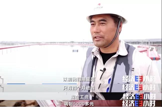 這天,周金飛他們整整賣了十車魚,拿到了1000元獎金。他現(xiàn)在不僅拿工資、領獎金,還有五險一金的待遇保障。工資、獎金、湖面租金,一年收入將近十萬元。