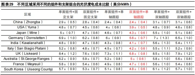 采用跟蹤支架雖然會增加初始投資和運維成本,但由于具有明顯的發(fā)電增益,能夠實現(xiàn)更低的度電成本。據(jù)彭博新能源的統(tǒng)計,2021上半年,采用跟蹤支架系統(tǒng)的光伏電站項目的全球平均度電成本約38美元/MWh,明顯低于固定支架光伏項目。