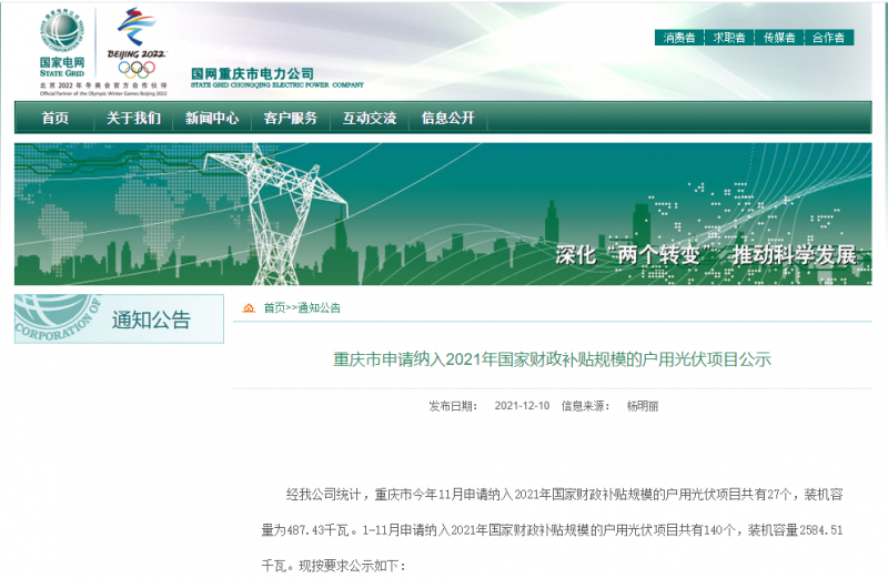 經(jīng)我公司統(tǒng)計,重慶市今年11月申請納入2021年國家財政補貼規(guī)模的戶用光伏項目共有27個,裝機容量為487.43千瓦。1-11月申請納入2021年國家財政補貼規(guī)模的戶用光伏項目共有140個,裝機容量2584.51千瓦?,F(xiàn)按要求公示如下: