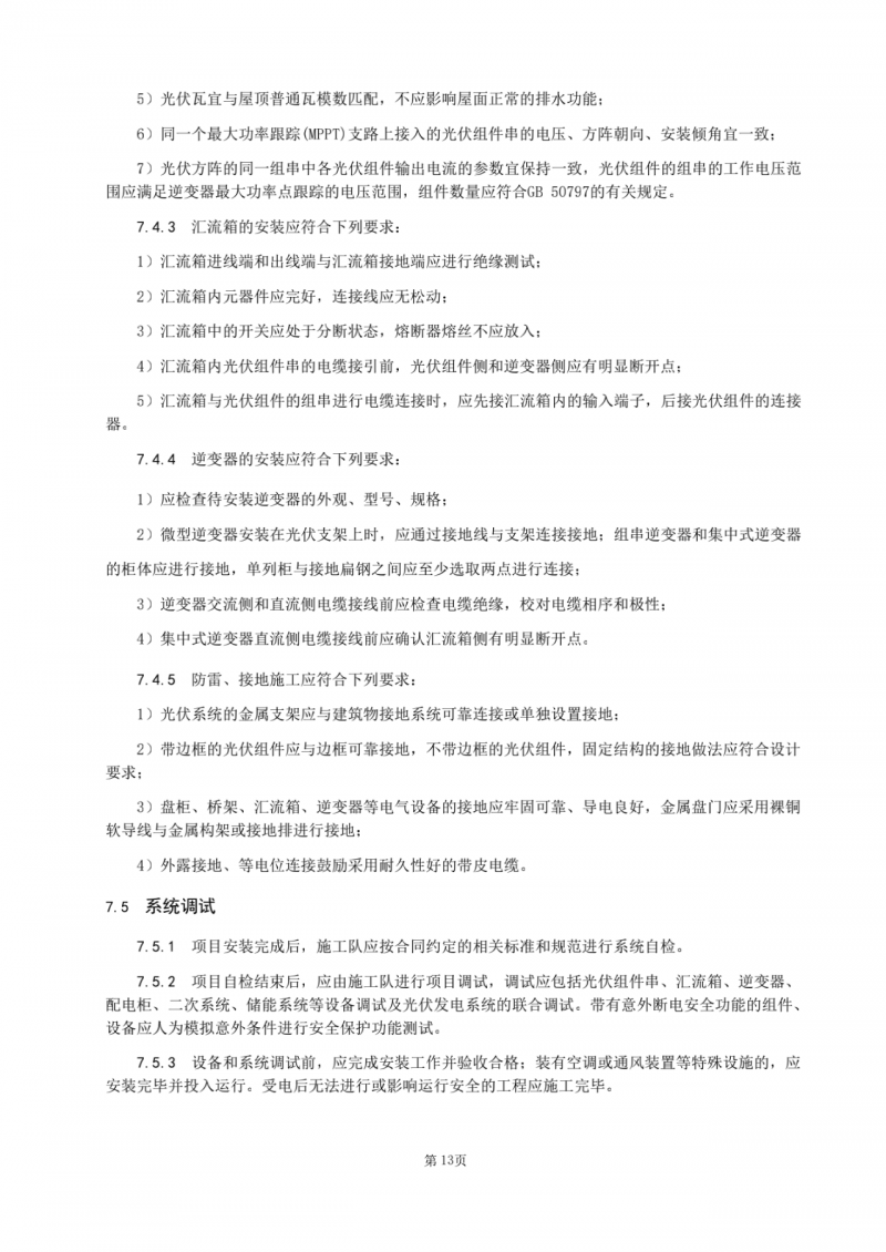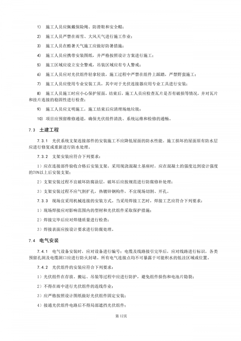 分布式光伏設(shè)計(jì)、安裝和運(yùn)維企業(yè)應(yīng)配備光伏發(fā)電領(lǐng)域的專(zhuān)職技術(shù)人員,應(yīng)具備與服務(wù)內(nèi)容相匹配的技術(shù)能力,鼓勵(lì)從業(yè)人員積極提升專(zhuān)業(yè)能力,主動(dòng)參加由行業(yè)組織或?qū)I(yè)機(jī)構(gòu)組織開(kāi)展的針對(duì)性系列技術(shù)培訓(xùn)并取得培訓(xùn)合格證書(shū)。