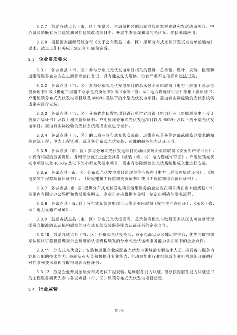 各試點(diǎn)縣(市、區(qū))的工商業(yè)分布式光伏安裝商、運(yùn)維商應(yīng)具備住建部或能監(jiān)辦要求的相關(guān)建筑工程、電力工程資質(zhì),或具備分布式光伏安裝、運(yùn)維的服務(wù)能力認(rèn)證證書(shū)。