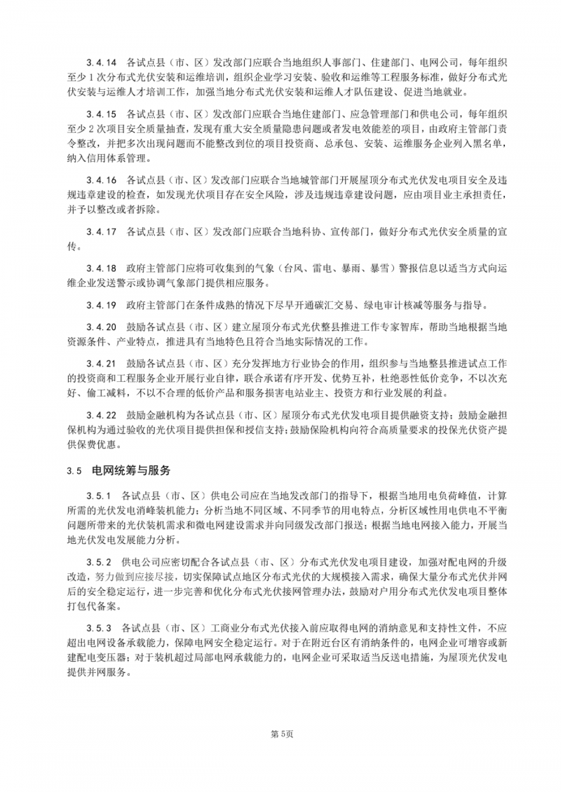 各試點(diǎn)縣(市、區(qū))應(yīng)成立整縣推進(jìn)試點(diǎn)工作專(zhuān)班,在屋頂資源管理、項(xiàng)目招標(biāo)、項(xiàng)目融資和并網(wǎng)、電費(fèi)結(jié)算等方面加強(qiáng)統(tǒng)籌協(xié)調(diào),并加強(qiáng)事中事后監(jiān)管。