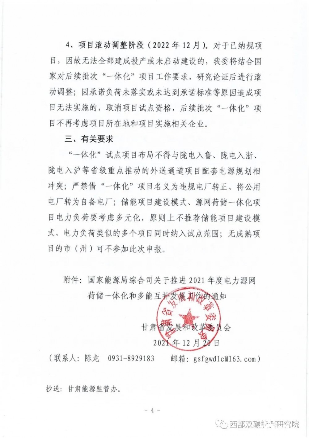 12月20日,甘肅省發(fā)改委印發(fā)《關于組織申報“十四五”電力源網荷儲一體化和多功能互補發(fā)展首批試點項目的通知》,就項目申報有關事項給出具體指導。