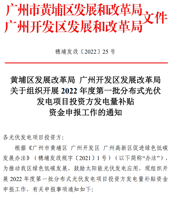 原標題:黃埔區(qū)發(fā)展改革局 廣州開發(fā)區(qū)發(fā)展改革局 關(guān)于組織開展2022年度第一批分布式光伏發(fā)電項目投資方發(fā)電量補貼資金申報工作的通知